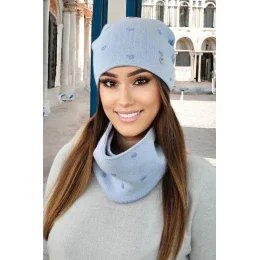 Krásna, na dotyk príjemná súprava pozostávajúca z čiapky a šálu. Dokončená zaujímavým priestorovým vzorom z lesklej priadze. Vďaka vysokému obsahu viskózy v priadzi je súprava mimoriadne pohodlná na nosenie. Súprava dokonale doplní každý jesenný a zimný styling