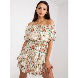 Rozmery súpravy vo veľkosti S/M merané na plocho: šírka blúzky v podpazuší - 45 cm, dĺžka blúzky - 47 cm, šírka sukne v páse - 33 cm, dĺžka sukne - 44 cm.