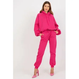 Mikinový set pozostávajúci z mikiny a nohavíc. Mikina s dlhými rukávmi a kapucňou. Dlhé nohavice so zaväzovaním v páse a nápletovými vreckami.