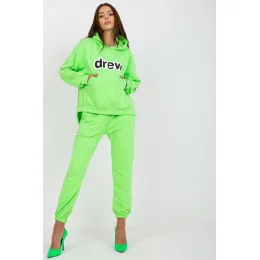 Dámska tepláková súprava pozostávajúca z mikiny a nohavíc. Mikina s dlhými rukávmi, kapucňou a klokaním vreckom na prednej strane. Dlhé nohavice s elastickým pásom a vreckami s nášivkami.