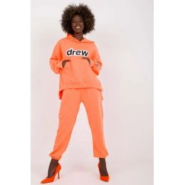 Dámska tepláková súprava pozostávajúca z mikiny a nohavíc. Mikina s dlhými rukávmi, kapucňou a klokaním vreckom na prednej strane. Dlhé nohavice s elastickým pásom a vreckami s nášivkami.