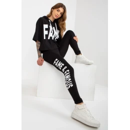 Mikinový set pozostávajúci z mikiny a legín. Voľná mikina s krátkymi rukávmi a kapucňou. Dlhé legíny so širokým elastickým pásom. Set s ozdobným nápisom.