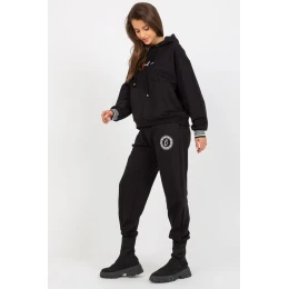 Tepláková súprava pozostávajúca z mikiny a nohavíc. Mikina s dlhým rukávom, kapucňou a klokaním vreckom. Dlhé nohavice so šnúrkou v páse a vreckami na bokoch.