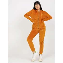 Tmavožltá dámska velúrová súprava s mikinou na zips y .