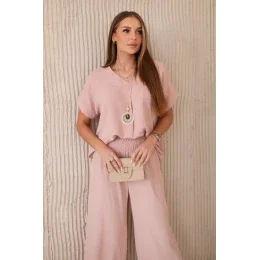Súprava s náhrdelníkom blúzka + nohavice tmavá púdrovo ružová