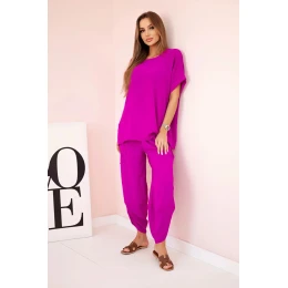 Objevte jedinečný komplet vyrobený z prodyšné a jemné viskózy, který kombinuje styl a pohodlí při nošení. Halenka s klasickým střihem skvěle padne na postavu, zajišťuje volnost pohybu a elegantní vzhled. Díky lehké tkanině je velmi příjemná na pokožce a ideální pro každé roční období. Kalhoty, navržené s důrazem na pohodlí, mají elastický pas a volnější střih, což zajišťuje skvělé přizpůsobení postavě. Jedná se o univerzální soupravu, která se skvěle hodí jak pro každodenní outfity, tak pro elegantnější příležitosti. Zvolte komplet z viskózy, pokud si ceníte lehkosti, přírodních tkanin a moderního vzhledu. Perfektní volba pro ženy, které se chtějí cítit stylově a pohodlně po celý den. Velikost je univerzální a vhodná pro ženy nosící velikost S, M nebo L.