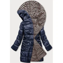 Tmavo modro-béžová preložená obálková dámska bunda s kapucňou (B8040-3046)