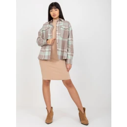 Tmavobéžová voľná kockovaná košeľa s dlhším zadným dielom .