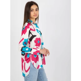 Fuksiovo modrá košeľa s potlačou na gombíky .