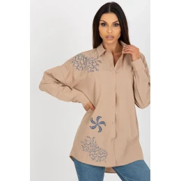 Dámska voľná košeľa s dlhými rukávmi a zapínaním na gombíky. Košeľa je vyšívaná zaujímavými vzormi.