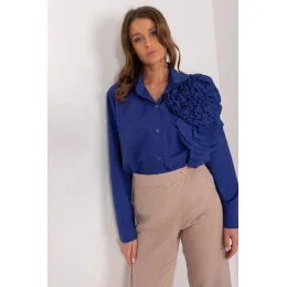 Dámska košeľa, ktorá elegantne podčiarkuje ženský štýl. Je vyrobená z hladkej tkaniny, ktorá poskytuje pohodlie a voľnosť pohybu. Vďaka klasickému strihu na gombíky je ideálny na mnohé príležitosti, najmä tie formálnejšie. Na prednej strane, na úrovni ľavého ramena, sa nachádza veľký ozdobný textilný kvet, ktorý dodáva košeli jedinečný šarm a jemnosť. Dlhé rukávy podčiarkujú eleganciu a rafinovanosť košele a dokonale sa hodia k rôznym štýlom. Hlavným materiálom použitým na výrobu trička je kvalitná bavlna, ktorá zaručuje prirodzenú priedušnosť pokožky a celodenné pohodlie pri nosení. Táto košeľa je ideálnou voľbou pre ženy, ktoré ocenia eleganciu a osobitý štýl v každej situácii.