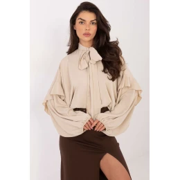 Táto elegantná dámska košeľa bez goliera má nadčasový dizajn s klasickým charakterom, ktorý je ideálny na každodenný život, do práce alebo na slávnostné udalosti. Je vyrobená z ľahkého polyesteru a ponúka pohodlie pri nosení a bezchybný vzhľad počas celého dňa. Model má štandardnú dĺžku a dlhé puzdrové rukávy s jemným volánom, ktorý celku dodáva ženský šarm. Výstrih s ozdobnými viazankami zvýrazňuje krk a praktické zapínanie na gombíky zaručuje pohodlie a klasický štýl. Vďaka hladkej tkanine je košeľa skvelým doplnkom k elegantným nohaviciam aj sukniam, čím vytvára štýlový a prispôsobený vzhľad.
