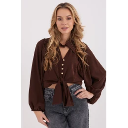 Elegantní klasická košile je univerzálním prvkem šatníku, který se skvěle hodí jak na formální události, do práce, tak i do každodenních stylizací. Hladký vzor jí dodává nadčasový charakter a umožňuje snadné kombinování s dalšími kousky oblečení. Model s kratší délkou a dlouhým rukávem zakončeným efektním puff nářezem přidává celku subtilní eleganci a moderní výraz. Klasický límec podtrhuje formální charakter košile a zapínání na knoflíky zajišťuje pohodlí a estetické přizpůsobení. Košile je vyrobena z vysoce kvalitní směsi viskózy, elastanu a polyesteru, což zaručuje pohodlí nošení, lehkost a jemnou pružnost materiálu. Další výhodou je šněrování dole, které umožňuje individuální přizpůsobení a dodává stylizaci ženský charakter.