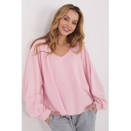 Každodenná voľná blúzka, ideálna na pohodlné a štýlové oblečenie na každý deň. Je vyrobená z mäkkej bavlny s prídavkom elastanu, poskytuje pohodlie a skvele sa prispôsobí postave. Model s hladkým vzorom a štandardnou dĺžkou má výstrih do V, ktorý jemne zvýrazňuje krk a dodáva blúzke ženský charakter. Dlhé, nadýchané rukávy sú módnym doplnkom a dodávajú blúzke ľahkosť. Absencia zapínania zdôrazňuje jednoduchosť strihu a pohodlie pri nosení. Skvelý dizajn na každodenné, voľné oblečenie.