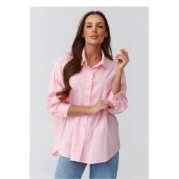 Elegantná a všestranná dámska košeľa v jednej veľkosti, ktorá je ideálna na každodenné nosenie aj elegantnejšie štýly. Model s voľným strihom poskytuje pohodlie a voľnosť pohybu, pričom pôsobí ľahko a žensky. Košeľa je vyrobená z ľahkého materiálu, ktorý je ideálny na jar, leto a prechodné obdobia. Má klasický golier, zapínanie na gombíky a výrazné vrecko, ktoré celku dodáva ležérny charakter. Jemná farba krásne dopĺňa štýl a hodí sa k mnohým kúskom šatníka. Vyrobené v Taliansku.