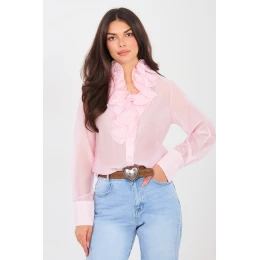 Dámská košile z průhledného materiálu je stylovým návrhem, který spojuje klasiku s decentní elegancí. Vyrobená z lehkého, jemného materiálu z tencelu s přídavkem polyesteru se krásně přizpůsobuje postavě a dodává outfitu lehkost a rafinovaný charakter. Klasický střih s standardní délkou doplňuje dlouhý rukáv a límec zakončený stojáčkem, který zdůrazňuje elegantní styl košile. Zapínání na knoflíky zajišťuje pohodlné nošení a umožňuje přizpůsobit košili různým příležitostem. Výjimečným prvkem modelu je plisovaný límec, který dodává celku eleganci a ženskou jemnost, čímž dělá košili ideální volbou jak na společenské události, do práce, tak i do elegantnějších každodenních outfitů. Hladký vzor dělá z košile skvělou kombinaci s saka, látkovými kalhotami nebo sukní, vytvářející nadčasové a stylové sestavy.