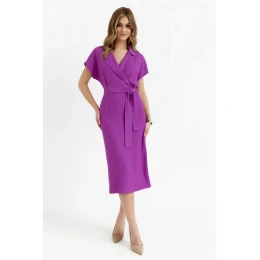 Košeľové šaty s opaskom S363 levanduľová - Stylove