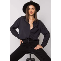 Čierna dámska košeľa s dlhými rukávmi. Košeľa sa zapína na gombíky.
