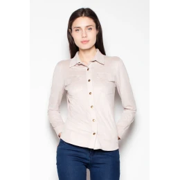 Semišová košeľa s dlhými rukávmi a kovovými gombíkmi. Model klasického strihu sa skvele hodí k priliehavým nohaviciam.