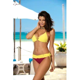 Podprsenka s košíčkami vystuženými mäkkou penou, s push-up podprsenkou trvalo umiestnenou v modeli (bez možnosti vybratia), pekne zhrňuje prsia, približuje ich k sebe a opticky zväčšuje, pričom zároveň vytvára hlboký, zmyselný dekolt. Ramienka v strede tento sexi dojem ešte umocňujú. Push-up podprsenka je prítomná v každej veľkosti modelu. Podprsenka sa zaväzuje za krkom a na chrbte. Súčasťou súpravy sú nohavičky s ozdobným zaväzovaním na bokoch, vložené tradičným spôsobom (zaväzovanie je ozdobným prvkom). Elegantné farby, ktoré dokonale ladia s letnou klímou.
