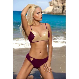 Štýlové dvojdielne plavky s podprsenkou so zlatými rámikmi. Tepelne profilované košíčky s ponorom vytvárajú zvodný dekolt. Súčasťou sú pohodlné nohavičky.