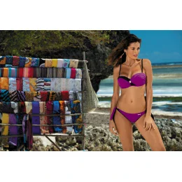 Jedny z nejkrásnějších dvoudílných plavek z této kolekce. Krásné, ženské, elegantní... Podprsenka s překrytým výstřihem, uprostřed zdobená krásnou broží. Vypadá obzvlášť dobře, zejména proto, že výrobce navrhl velmi svůdnou konstrukci. Její košíčky byly vhodně vyztuženy, vyztuženy velrybími kosticemi a obohaceny kapsičkami pro přiložené push-up košíčky - dokonale sbírají prsa, zvedají je a přiměřeně zvětšují. Vytvářejí fenomenální dekolt. Ramínka jsou odepínací, délkově nastavitelná, ideální na opalování. V pase se pohodlně zapínají vzadu na přezku. Kalhotky jsou hladké, na bocích zavazovací. Vřele doporučujeme!