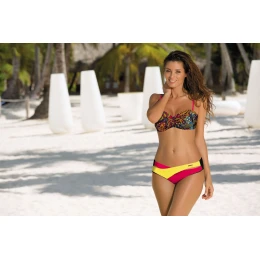 Podprsenka má vystužené košíčky pokryté pekným potlačeným vzorom v krásnych exotických farbách. V spodnej časti (a na bokoch) podprsenky sú kostice, ktoré tvarujú prsia. Veľkosti S, M, L, XL majú aj vrecká na priložené (vyberateľné) push-up košíčky. Vložte ich do košíčkov a vaše poprsie sa zdvihne, prsia sa priblížia k sebe a sú viac sexi, čím sa vytvorí vysnívaný dekolt. Podprsenka je elastická po celom obvode a vzadu má zapínanie na pracku. Ramienka sú dĺžkovo nastaviteľné, môžete ich úplne odopnúť a pohodlne sa opaľovať.