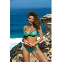 Sexi novinka Naomi M-474. Košíčky sú vzorované s vlnovkovým efektom a kaskádovitými farbami, pričom farby krásne prechádzajú z jednej do druhej. Konštrukcia je vystužená, s kosticami a push-up košíčkami natrvalo umiestnenými v podprsenke. Ideálne pre malé a stredne veľké prsia, pretože na nich pôsobia najlepšie - nadvihnú, vytvarujú a opticky zväčšia, čím vám poskytnú výnimočne ženský, zmyselný dekolt. Ramienka bez ramienok s nastaviteľnou dĺžkou, vzadu zapínanie na viazanie, vo farbách ladiacich s podprsenkou.