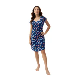 Nočná košeľa Luna s potlačou, vzorovaná, krátke rukávy, okrúhly výstrih s lemovaním, mierne zaoblený lem. Dĺžka košele pred kolenami.