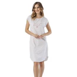 Dámske tričko s krátkymi rukávmi z jemnej bavlny so vzorom v tvare srdca, jemnou potlačou na hrudi a mierne zaobleným spodným okrajom.