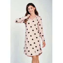 Nočná košeľa s dlhými rukávmi, rebrovanými manžetami, otvoreným výstrihom a mierne zaobleným lemom.