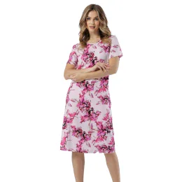 Dámske tričko s krátkym rukávom z mäkkej bavlny s kvetmi, okrúhlym výstrihom a dĺžkou po kolená.
