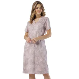 Dámske tričko s krátkym rukávom zo vzorovanej bavlny s výstrihom a dĺžkou po kolená.