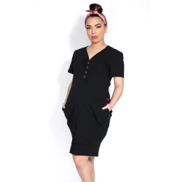 Nočná košeľa z kvalitnej bavlny, krátke rukávy, praktické vrecká, výstrih do V, zapínanie na patentky, ideálna pre tehotné a dojčiace ženy.