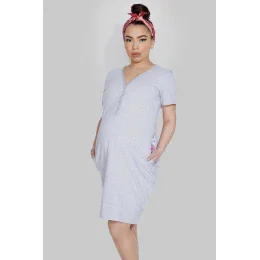 Košeľa má krátke rukávy a pohodlné vrecká. Výstrih v tvare písmena "V" sa zapína patentkami. Košeľa je vhodná pre tehotné a dojčiace ženy.