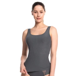 Drobne rebrovaná dámska košieľka (tielko) so širokými ramienkami.