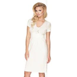Elegantná, hladká viskózna nočná košeľa s čipkou vo výstrihu a širším prešívaním pod prsiami, zvýraznená sladkou mašličkou. Strih na telo, v spodnej časti voľnejší. Pohodlné krátke rukávy. 85 % viskóza, 8 % elastan, 8 % polyamid.