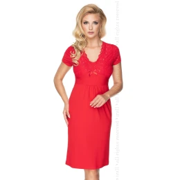 Gia je elegantná nočná košeľa, ktorá si poradí so stredným alebo väčším poprsím. Model je vyrobený z mäkkej viskózy a je doplnený čipkovanými vsadkami. Vrchná časť je mierne vypasovaná s krátkymi rukávmi a jemným výstrihom. Stredná časť má dodatočné prešitie, ktoré zvyšuje komfort nosenia nočnej košele. Spodná časť je voľná. Celok je veľmi pružný a príjemný na dotyk. Zloženie: 85 % viskóza, 8 % elastan, 8 % polyamid.