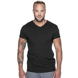 Pánske tričko z organickej bavlny s véčkovým výstrihom. Materiál je mäkký typu single jersey. Rukávy sú Trója vyhrnuté. Na krku a na ramenách sú spevnené švy.