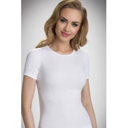 Tričko s krátkym rukávom je vyrobené z vysoko kvalitnej pleteniny. Okrúhly výstrih. Model dokonale podčiarkuje ženskú siluetu. Zloženie: 100% bavlna.