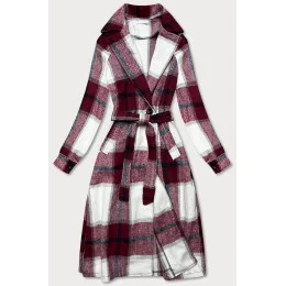 Bordó-biely dámsky károvaný košeľový kabát (7897)