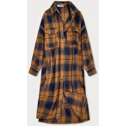 Hnedo-tmavo modrý dámsky károvaný košeľový kabát (8424)