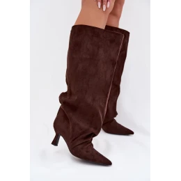 Dámské kozačky vyrobené z eko semiše jsou stylovým návrhem pro ženy, které ocení výrazné detaily. Model vyniká širokým, našitým lýkem, který dodává botám módní charakter a přitahuje pozornost. Tenký podpatek jemně zeštíhluje siluetu a špičaté špičky zdůrazňují elegantní linii boty. Nášivkový střih zajišťuje pohodlí a usnadňuje obouvání, díky čemuž jsou kozačky vhodné pro každodenní nošení. Tento působivý pár je ideální na přechodné období a skvěle doplňuje outfity s šaty, sukněmi nebo kalhotami. Při výběru velikosti se řiďte tabulkou velikostí.