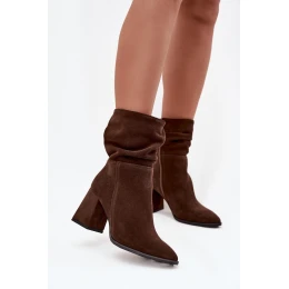 Kozačky z přírodního semiše zateplené na podpatku s vráskou Zazoo 4216 Čokoládové