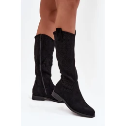 Kozaki Damskie Ażurowe Na Płaskim Obcasie S.Barski HY52-534 Czarne