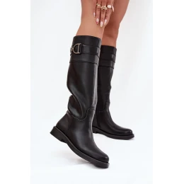 Kozaki Damskie Na Płaskim Obcasie Z Ozdobnym Detalem Czarne Arvessa