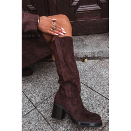 Kozaki Damskie Ocieplane Na Masywnym Słupku Czekoladowe Sanelle
