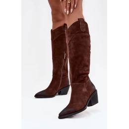 Kozaki Kowbojki Damskie Na Obcasie Z Naturalnego Zamszu Artiker 57C0230 Brązowe