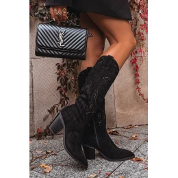 Kozaki Kowbojki Damskie Na Słupku Z Eko Zamszu Czarne Coretta