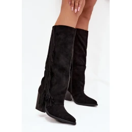 Kozaki Kowbojki Damskie Z Frędzlami Na Słupku Czarne Tivara